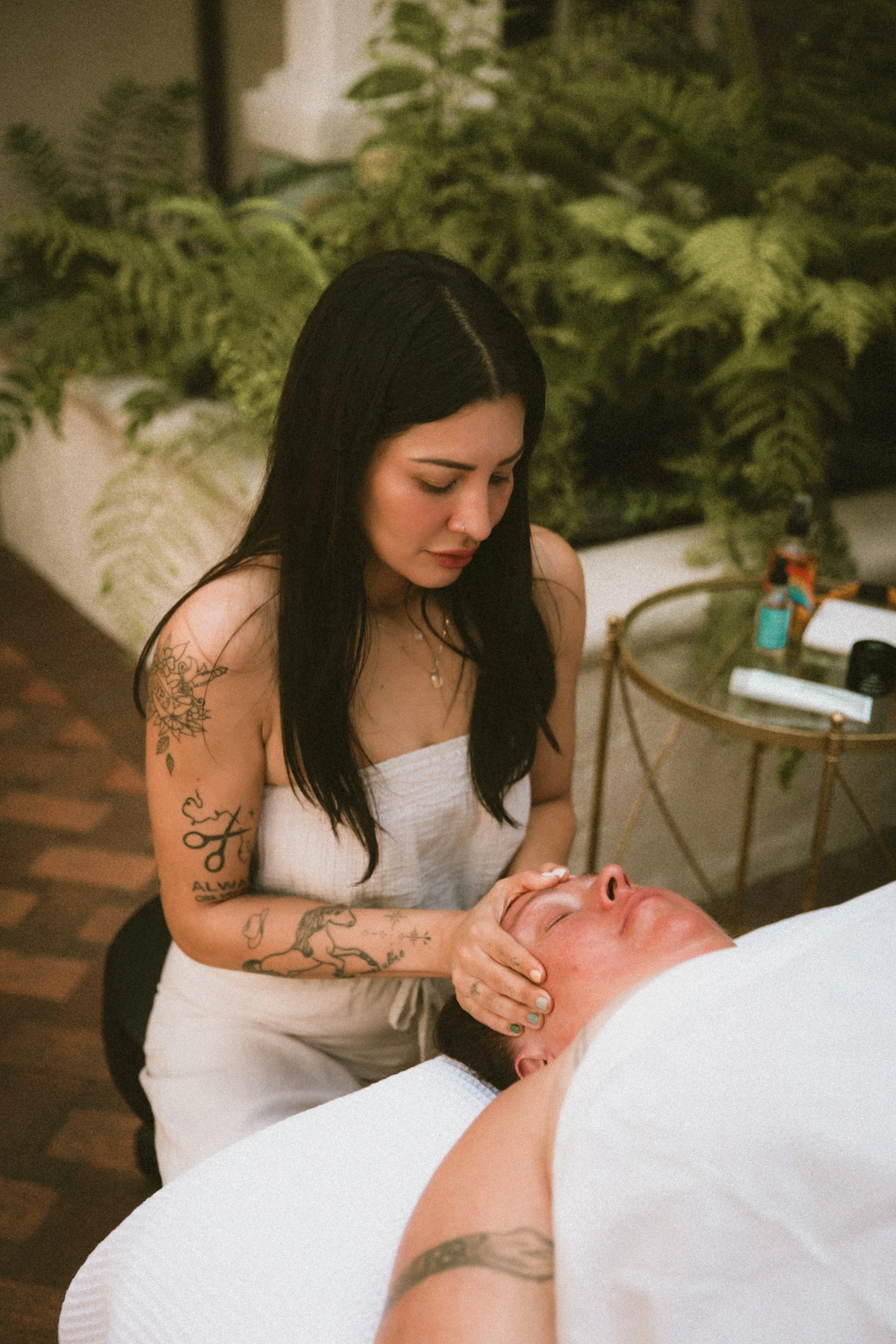 Through somatic facial sculpting, nutrient-dense botanicals, lymphatic therapy, and Holy Fire Reiki, you are guided back into your center — the place where your body remembers how to release + restore.